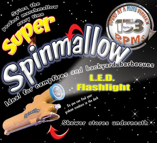 What an awesome marshmallow roaster! The perfect companion for your kids on your next camping trip. Its telescoping skewer is safely tucked out of the way just waiting to be brought into service. Its motorized spinner rotates at a blistering 153 RPMs. The flashlight uses a powerful white L.E.D. so you can find your way to the graham crackers and chocolate! The detachable skewer is easy to clean and then stores right back into the handle. Requires one 9 volt battery. (not included) Warning Choking Hazard! Contains small parts, not for children under 3.